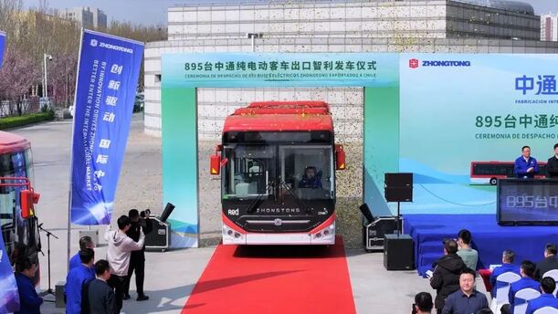 一個月后,中通客車再次甩出一把驚艷行業的“王炸”——3月26日,中通客車出口智利895臺純電動客車首批車輛發車儀式在聊城舉行,這是近年來中國客車出口智利單批次最大訂單。