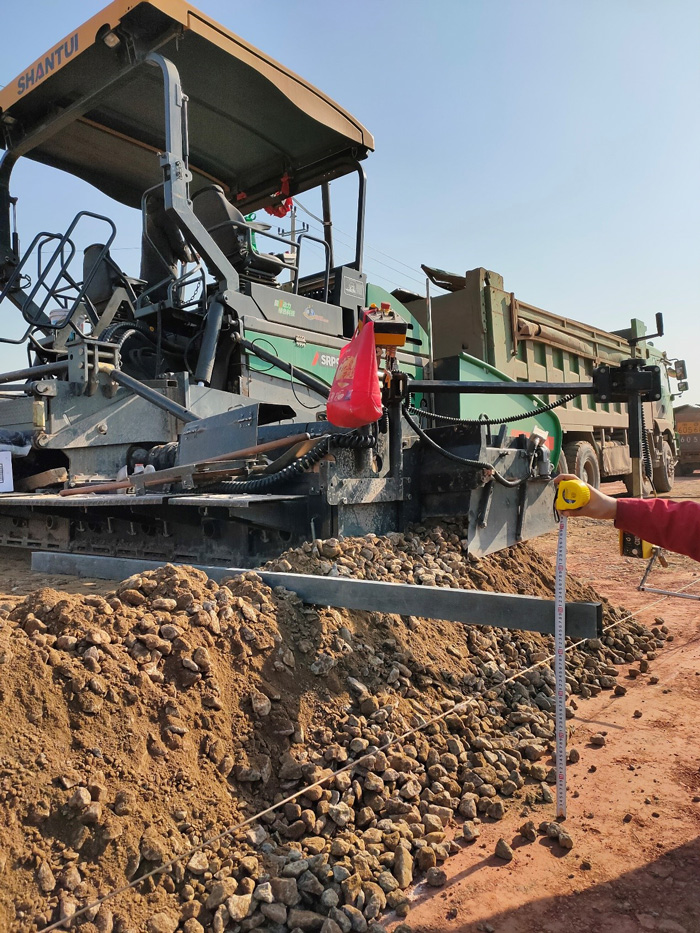 經過多品牌攤鋪效率對比,吳總選定了擁有290馬力的可伸縮的山推C5快速攤鋪機。吳總定車后,山推道機銷售人員只用了3天時間就把嶄新的攤鋪機交付到了嘉興快速路的工地上,每天攤鋪4000噸水穩料。