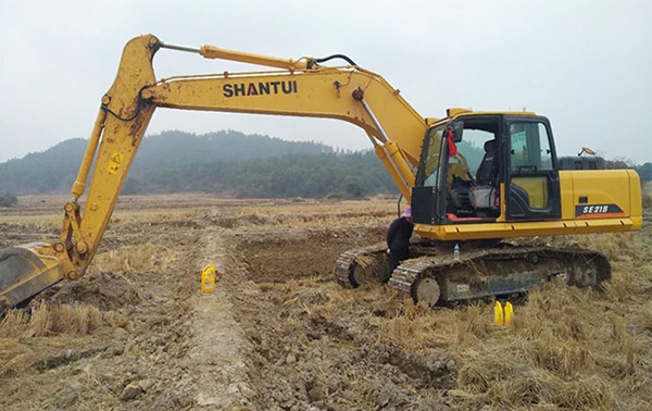 江西省XX縣農田改造工地,肖老板是山推挖掘機的新客戶,該機工作了968小時,獲得了用戶的高度稱贊,山推SE215-9動力強勁、高效節能、反應靈敏、操作舒適、保養簡單成本低等,下一步還會將山推挖掘機推薦給身邊朋友。