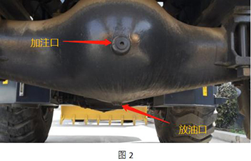 6、     工作完成后,將車輛停平穩,拉緊手制動,將前后橋的放油塞(圖2)堵拆下,放出橋包里的油液,用備用桶收集并妥善處理。將塞堵清理干凈。