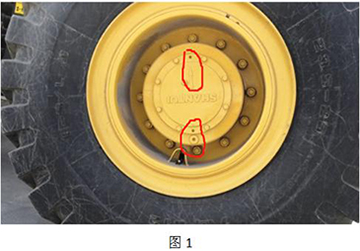 3、     將塞堵拆下后(圖1),將廢油用備用桶收集后妥善處理,將塞堵上的異物清理干凈。放油完畢后轉動輪胎,將箭頭方向指示朝下。
