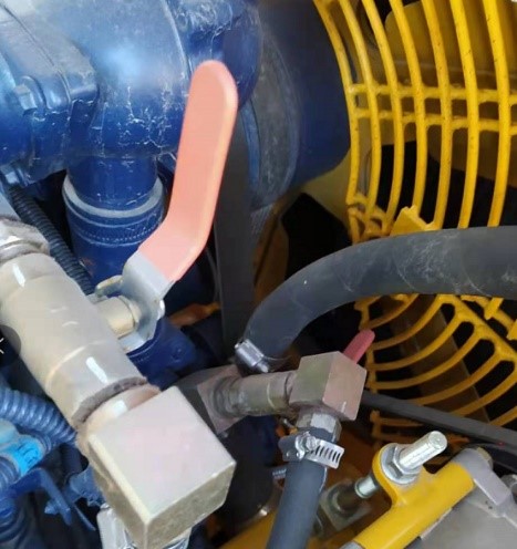 5、發動機防凍液排干凈后,關上水散熱器放水閥門;